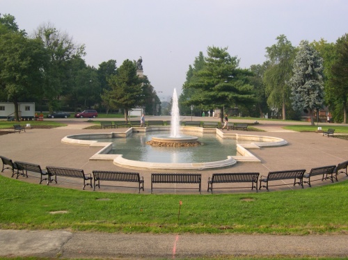The main park entrance is a grand Victorian entryway that includes bronze sculptures by Giuseppe Moretti and clustered Ionic columns. Efforts are currently under way to restore the fountain, reflecting pool, and formal gardens. The restored fountain and reflecting pool were finished in August 2004: